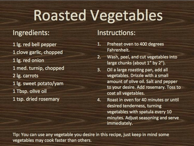 Check out the video (& recipe) below for delicious, carotenoid-packed, Roasted Vegetables: